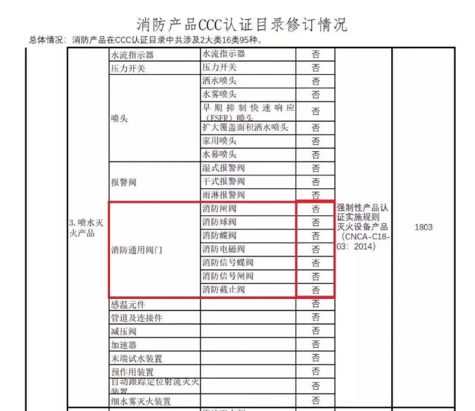 為貫徹落實(shí)黨中央、國務(wù)院關(guān)于深化消防執(zhí)法改革的決策部署,市場監(jiān)管總局會同應(yīng)急管理部對消防產(chǎn)品強(qiáng)制性認(rèn)證目錄作出調(diào)整?,F(xiàn)將有關(guān)事項(xiàng)公告如下: